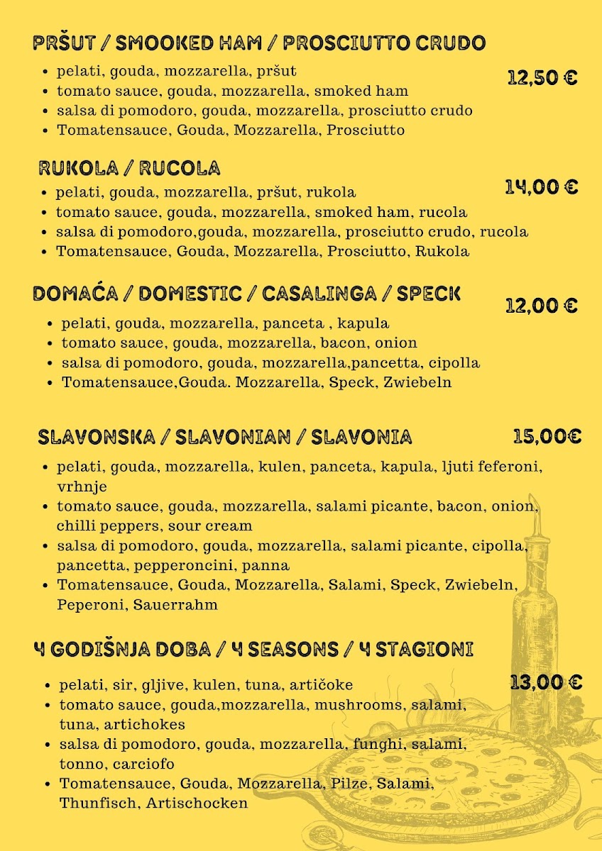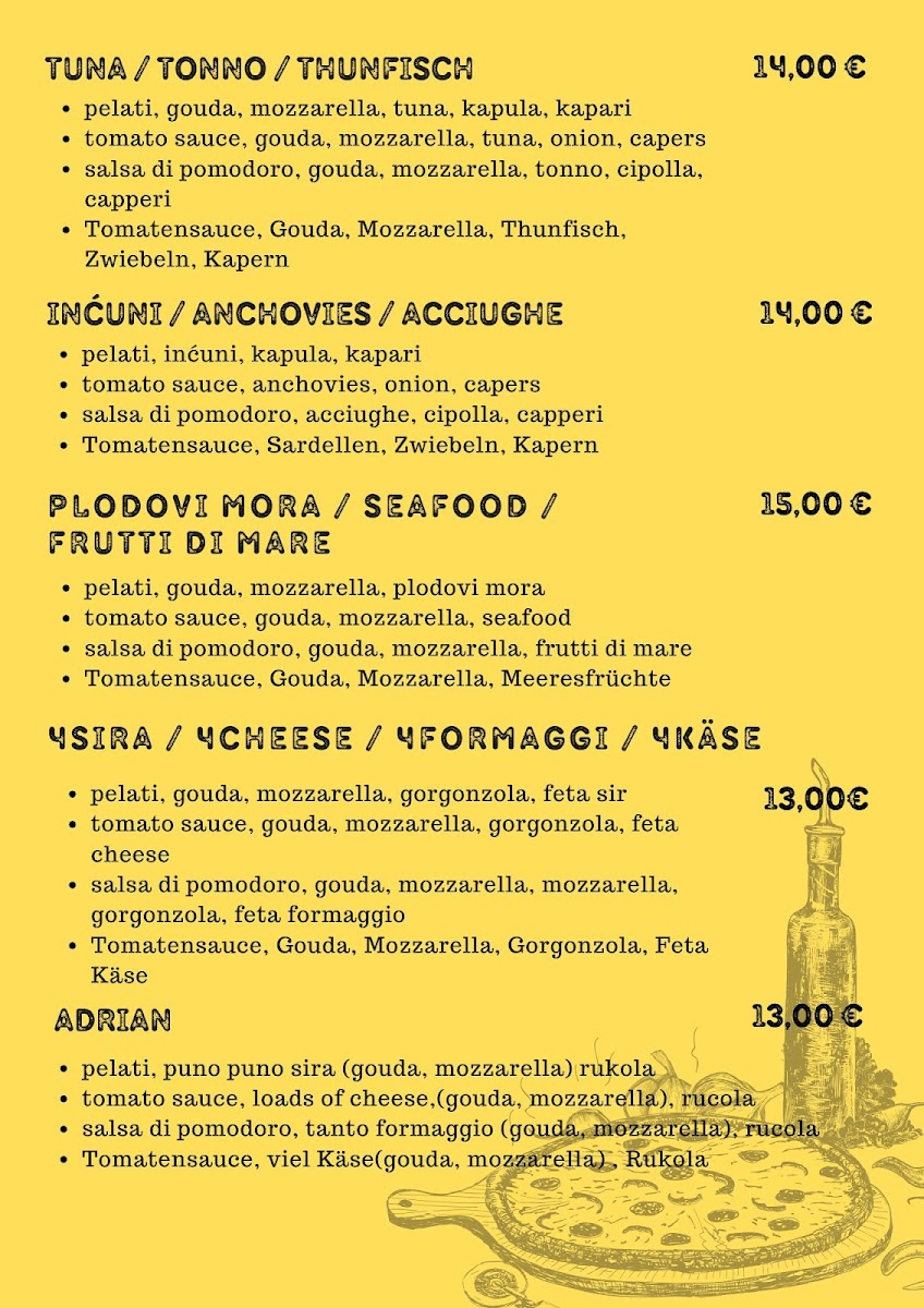 You’ll find a variety of freshly made pizzas featuring toppings like mixed meats, grilled mushrooms, and vegetarian options, served with a crispy, homemade dough. Complementing these are grill platters and local specialities that fit well with the warm, informal atmosphere of the bistro.