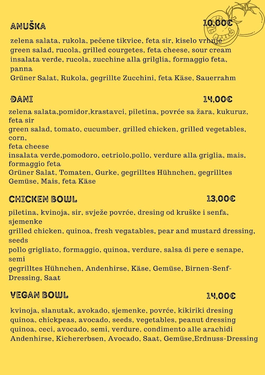 Bistro 'Venezia' Menu